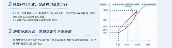 1)格力回油系統——針對滿液式水源熱泵機組,設置低油位保護控制,完全杜絕壓縮機少油損壞的可能性。